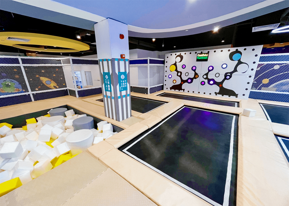 对场地进行装修是固定投资,包括装饰用途和防护用途都有必要,防火墙,通风管道,蹦床馆广播系统,电井升级,这成本最高能超过40万。