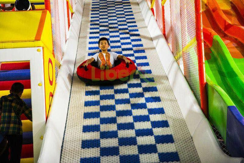 旱雪也成为了网红滑梯,利用皮划艇,坐在一定高度的平台上滑落,享受过程中带来的冲刺感,最后再掉落在充气垫上,期间总能听到玩者的尖叫声,成为蹦床乐园的一大亮点,