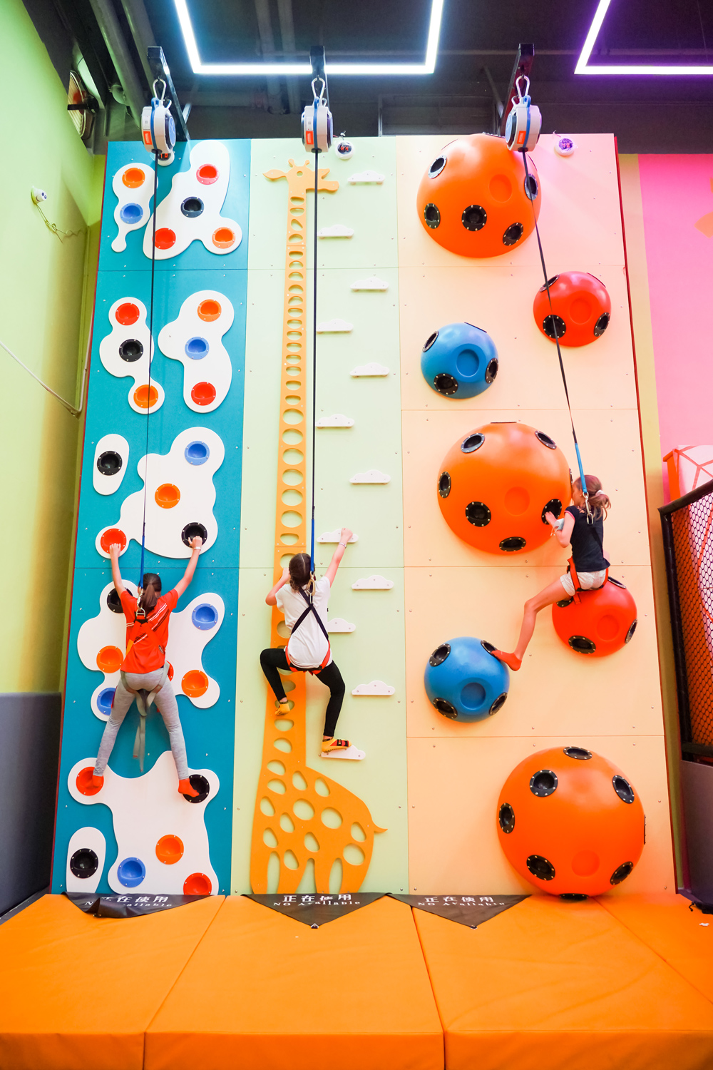 普通攀岩:墙体岩板是有平面设计,相对的减少攀爬难度,但不失起锻炼和攀岩乐趣。适合青少年和无大量运动者使用。