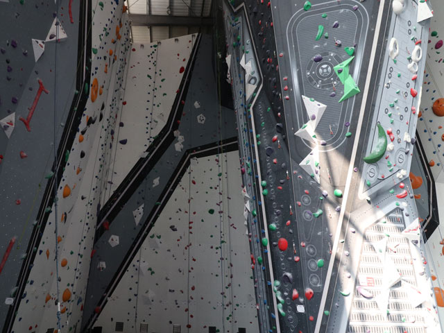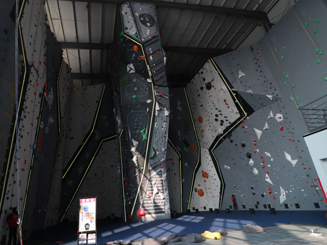攀岩墙的组成一般是有岩壁支架搭建的主体结构,分为独立结构和有支撑结构,采用钢结构。攀岩点攀岩支点是攀岩墙的重要配件,其制作材料和工艺是合岩板相似,形状千起百怪,有仿真石的,也有卡通形象的,由不锈钢螺栓固定在岩板上,运动者攀爬时双手的握点和脚的登点。现在人们把攀岩墙分为好几种:1、幼儿攀岩墙 2、普通攀岩 3、艺术攀岩 4、抱石攀岩。